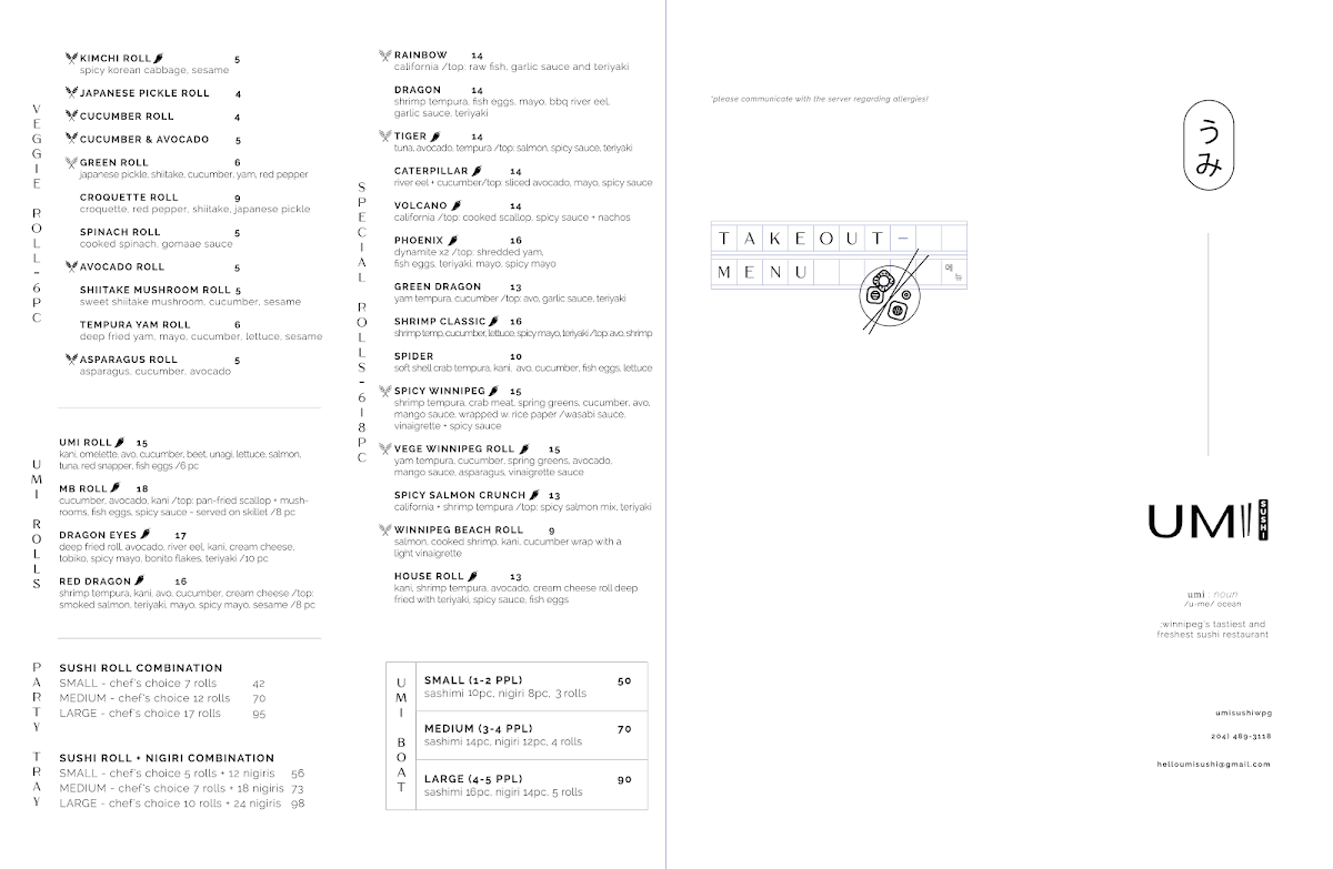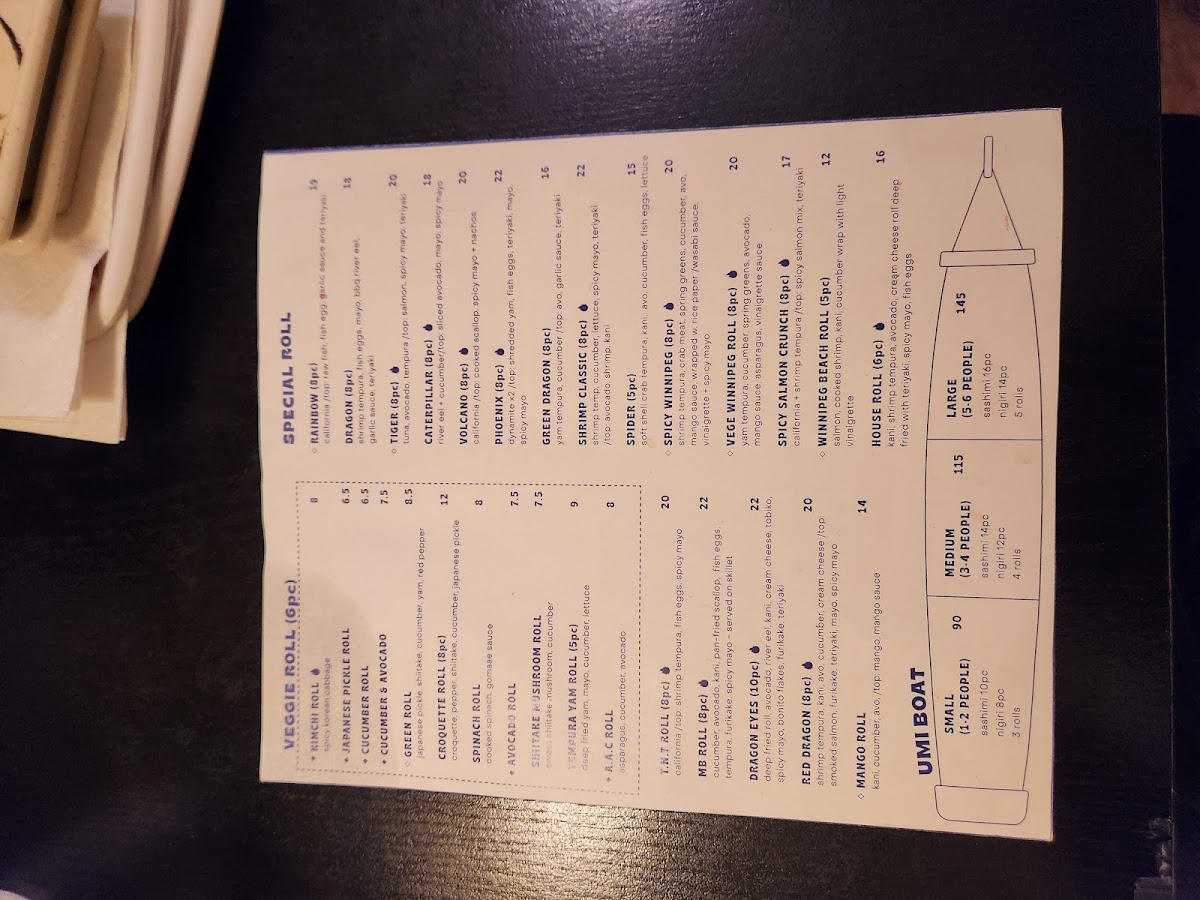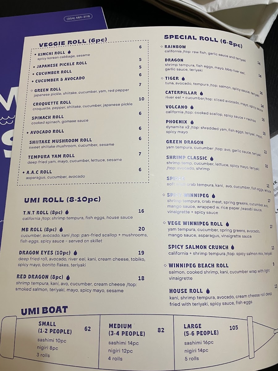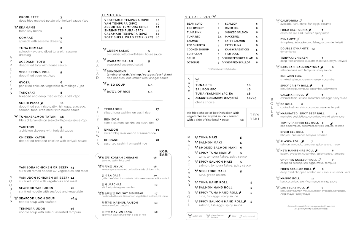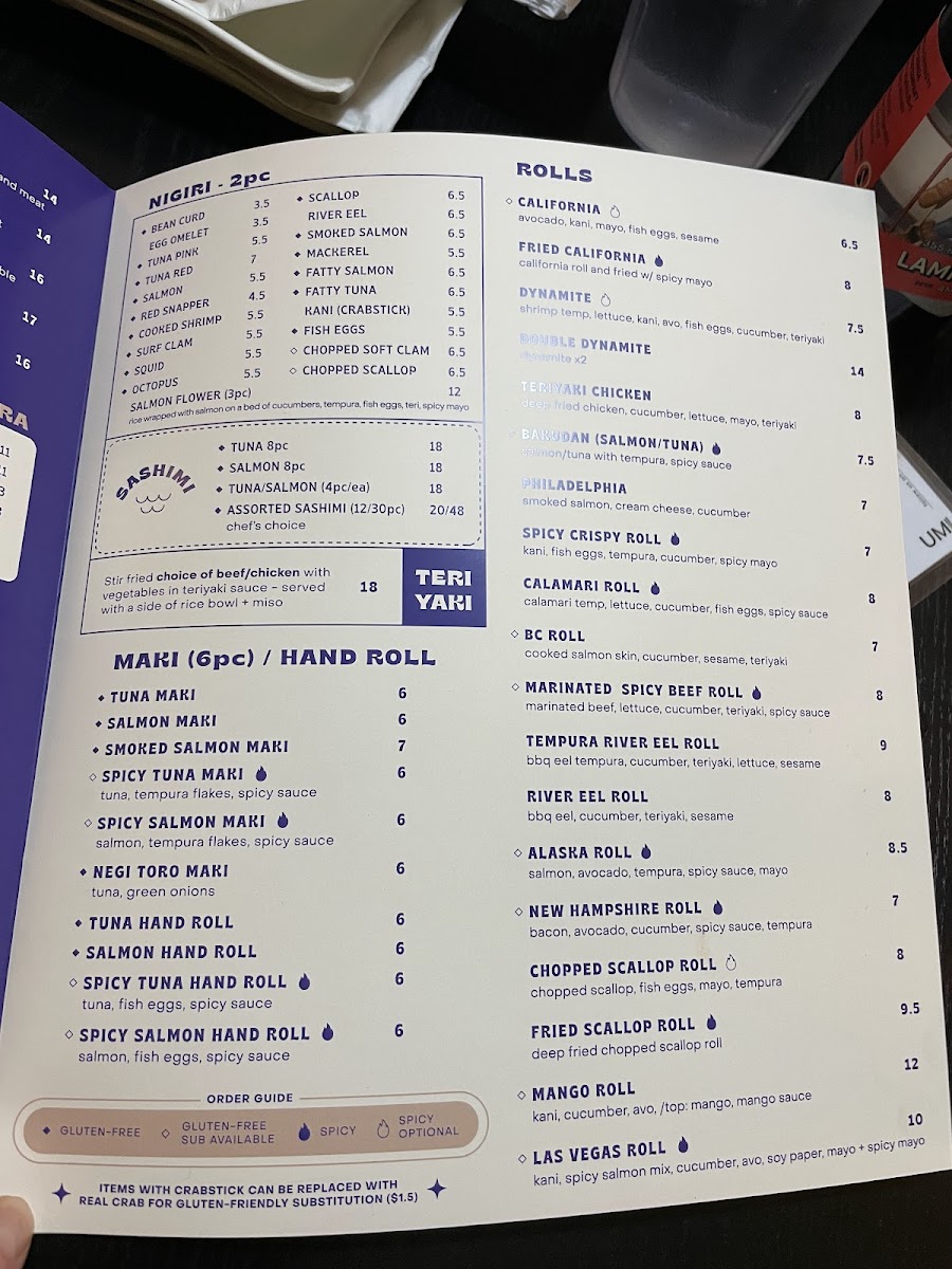 California + cucumber /top: Pan-fried baby scallop + mushrooms, fish eggs, spicy sauce - served on skillet /8 pc
