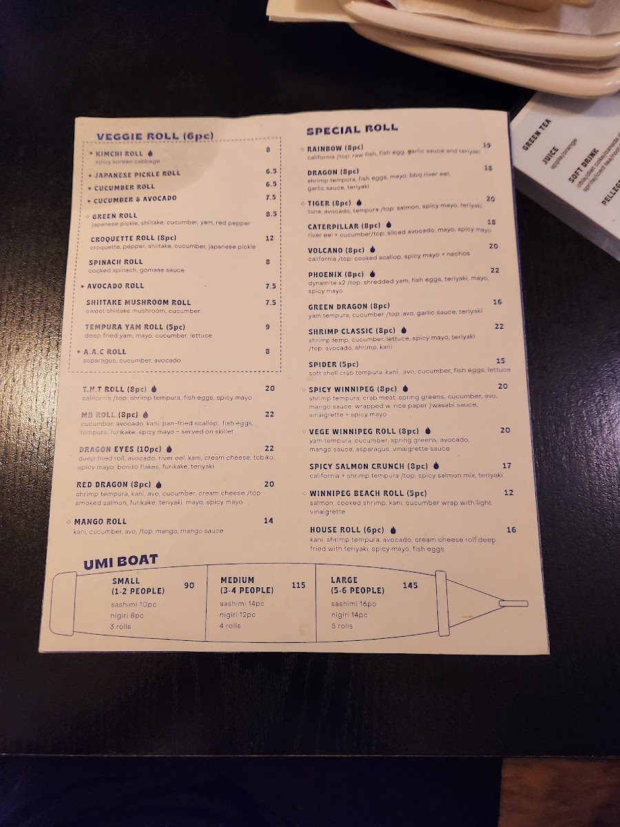 Crab meat, mayo, cucumber, and avocado, topped with mango and mango sauce.